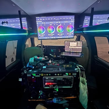 Meet the Mushroom Express: The Ultimate Mobile DIT Lab Text: "Designed for efficiency and reliability in any environment, the Mushroom Express is more than just a van—it’s a fully equipped, climate-controlled mobile office. Powered by a robust solar energy system and dedicated electrical connectivity, it ensures uninterrupted workflows regardless of location.